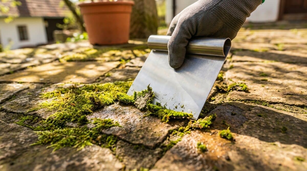 Voda vařící nebo chemické přípravky na mech jsou účinné. Ale mají svá úskalí. Silné chemikálie mohou poškodit dlažbu a znečistit zahradu.